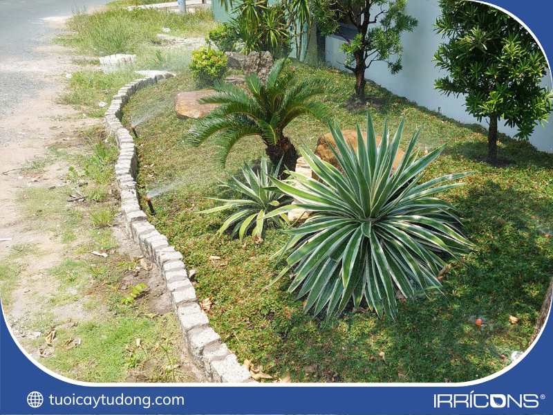 - Béc phun mưa tưới cỏ được thêm vào khu vực trồng cỏ hoặc nhiều cây bụi.