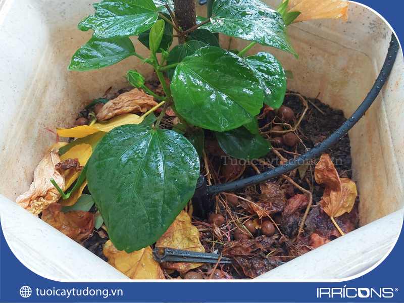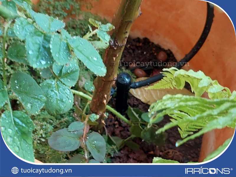 Với khoảng 10 chậu cây với các kích thước khác nhau, hơn nữa vị trí trồng là đặt trên sàn ở ban công. Do đó, hệ thống với các béc tưới nhỏ giọt hoặc béc có lưu lượng nước nhỏ, có thể điều chỉnh được lưu lượng nước tưới cho từng chậu cây sẽ là một lựa chọn tốt nhất.