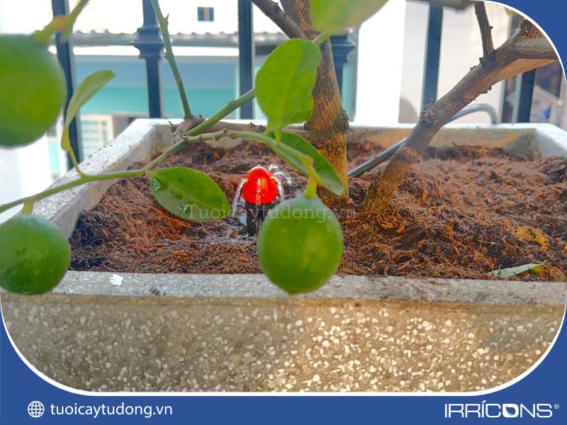 Đối với các chậu cây lớn có thể lắp đặt 2 béc tưới 8 tia cho một chậu cây