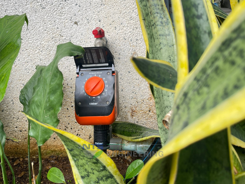 - Sử dụng timer hẹn giờ tưới loại kênh vặn của Claber: Loại cây trồng của khách không đa dạng, nhu cầu nước ít. Do đó, một chiếc timer với chức năng hẹn giờ đơn giản là đã phù hợp.