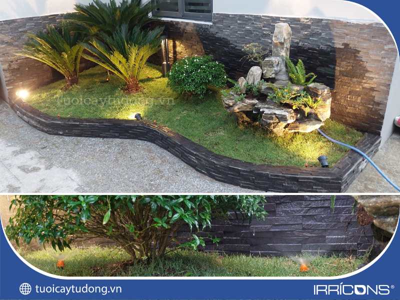 Hình ảnh béc phun sương được lắp đặt cho khu vực tiểu cảnh