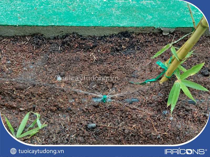Béc phun mưa tưới gốc được lắp đặt cho bồn cây công trình