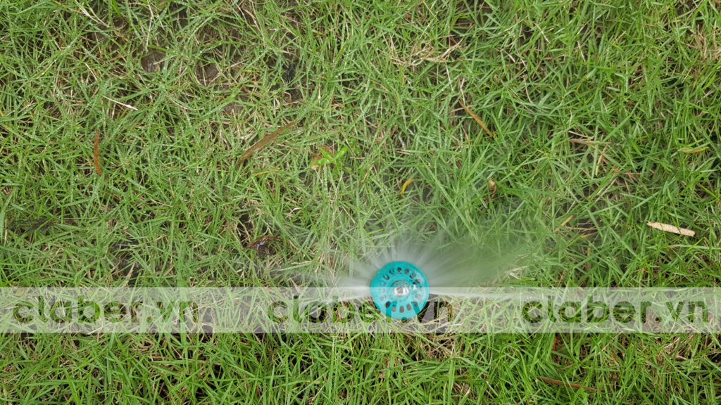 Đúng giờ, béc tưới phun mưa pop-up tự động nhô lên tưới.