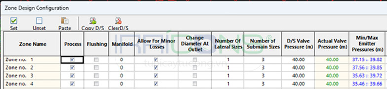 Irricad sẽ thực hiện tính toán thủy lực cho ống nhánh Zone pipe trước. Khi quá trình tính toán hoàn tất, phần mềm cung cấp mục lựa chọn để xuất báo cáo theo nhiều kiểu khác nhau.