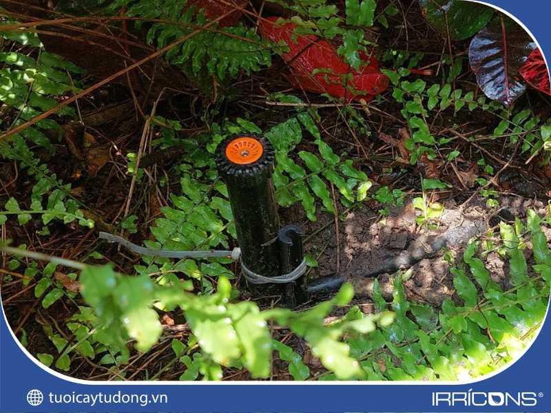 Béc tưới cỏ được lắp đặt cho hệ thống tưới cây tự động