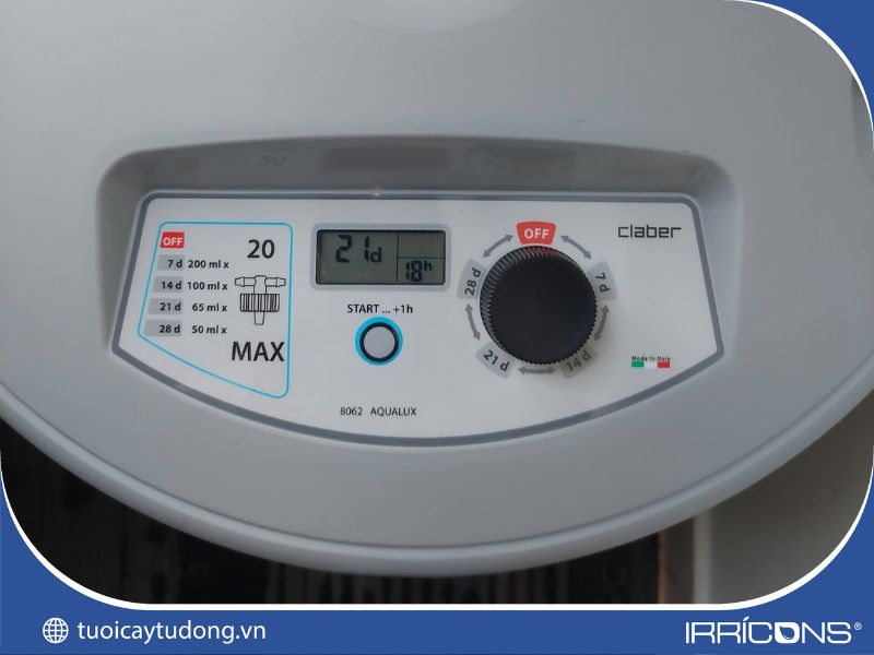 - Chương trình tưới đa dạng: Thiết bị cho phép cài đặt chế độ tưới theo chu kỳ 7, 14, 21 hoặc 28 ngày Việc lựa chọn và cài đặt chế độ tưới nhanh chóng chỉ với một vài thao tác.
