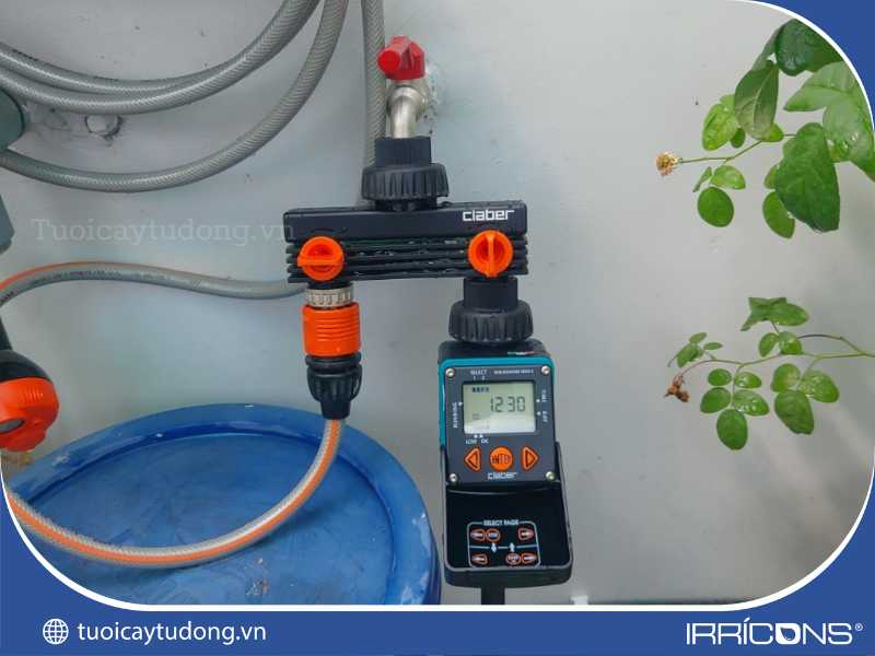 Hệ thống sử dụng bộ hẹn giờ tưới cây điện tử, hoạt động bằng pin. Tưới tối đa 2 lần/ ngày