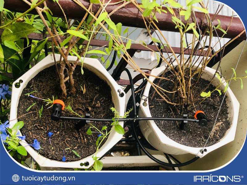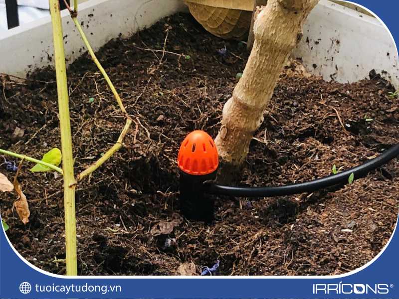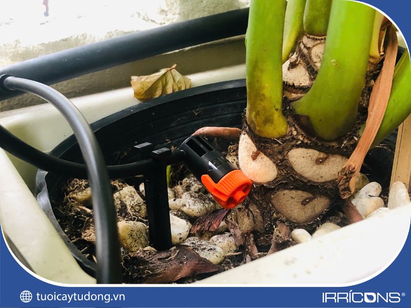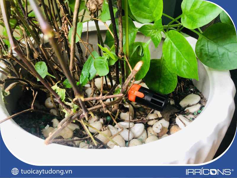 - Béc tưới nhỏ giọt: Sử dụng cho các chậu có kích thước vừa và nhỏ, nước tưới nhỏ giọt cung cấp nước đều và đủ cho cây.