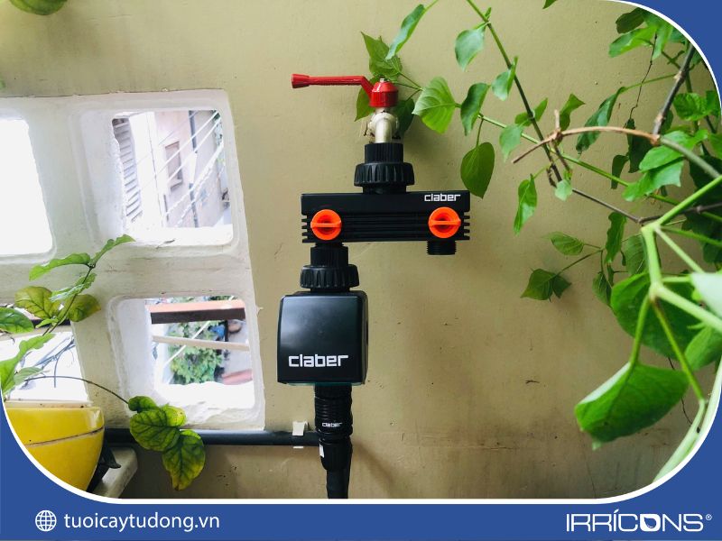 - Hẹn giờ tưới: Sử dụng timer hẹn giờ 8428, đây là mẫu hẹn giờ 2 lần tưới/ ngày. Sản phẩm dùng pin, rất phù hợp với các khu vực không có điện như ban công.