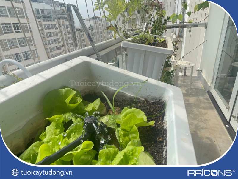 Hệ thống tưới cao cấp cho ban công tại nhà phố quận 7 - Hồ Chí Minh. Lắp đặt, thi công nhanh chóng trong vài giờ. Đẹp mắt, sang trọng, bền bỉ với thời gian và môi trường.