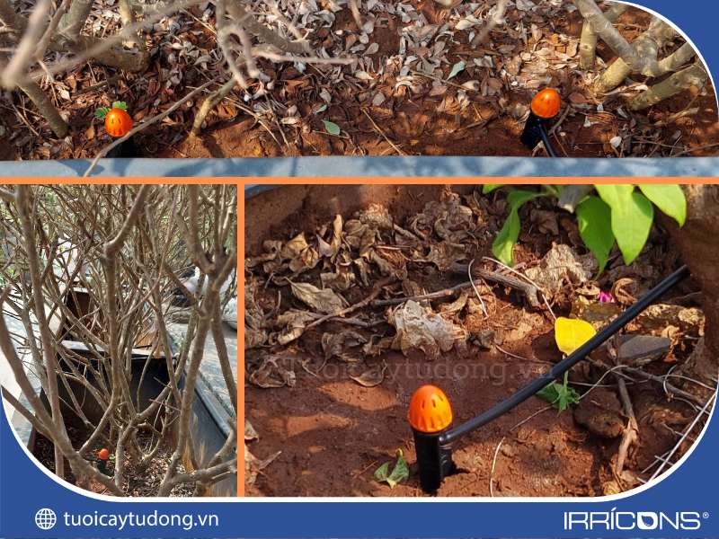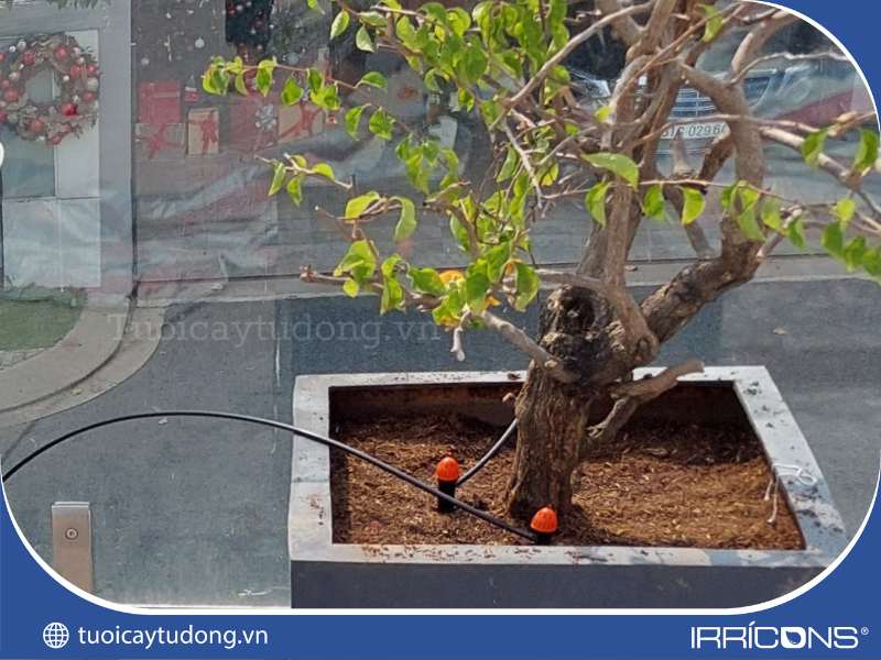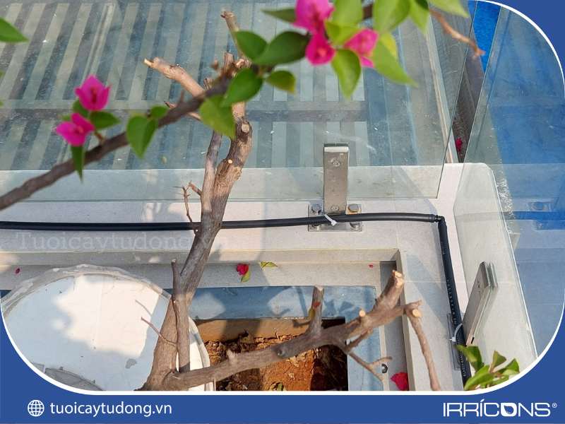 Béc tưới nhỏ giọt 8 tia được lắp đặt cho các bồn cây tại ban công