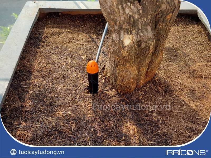 Lắp đồng thời 2 béc tưới 8 tia chân cắm để cung cấp đủ nước cho cây có nhu cầu nước lớn