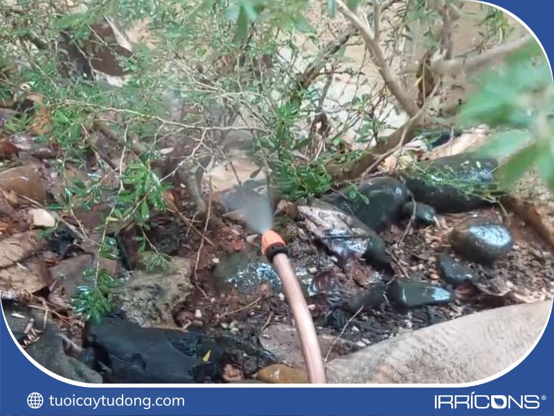 Béc phun sương được sử dụng kết hợp với chân chóng dài để tưới cho cây