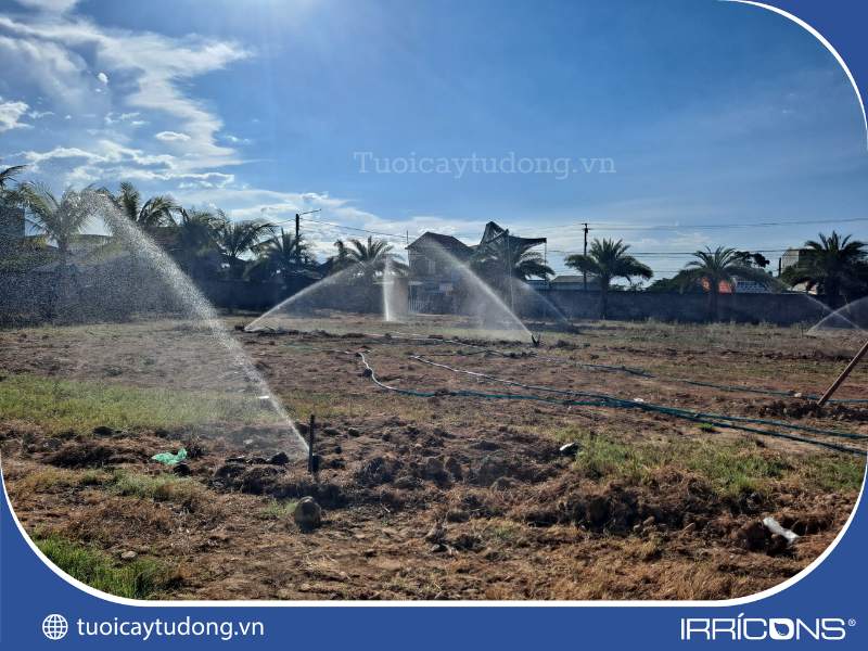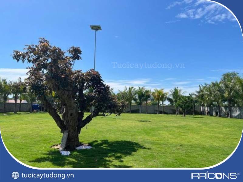 Thi công hệ thống tưới cho sân vườn rộng tại Tam Kỳ, Quảng Nam. Thi công hệ thống tưới cỏ, sử dụng béc tưới lưu lượng lớn. Cấp nước đều, đủ, nhanh chóng trên diện rộng. Hỗ trợ cây phát triển tốt, hiệu quả, chất lượng.