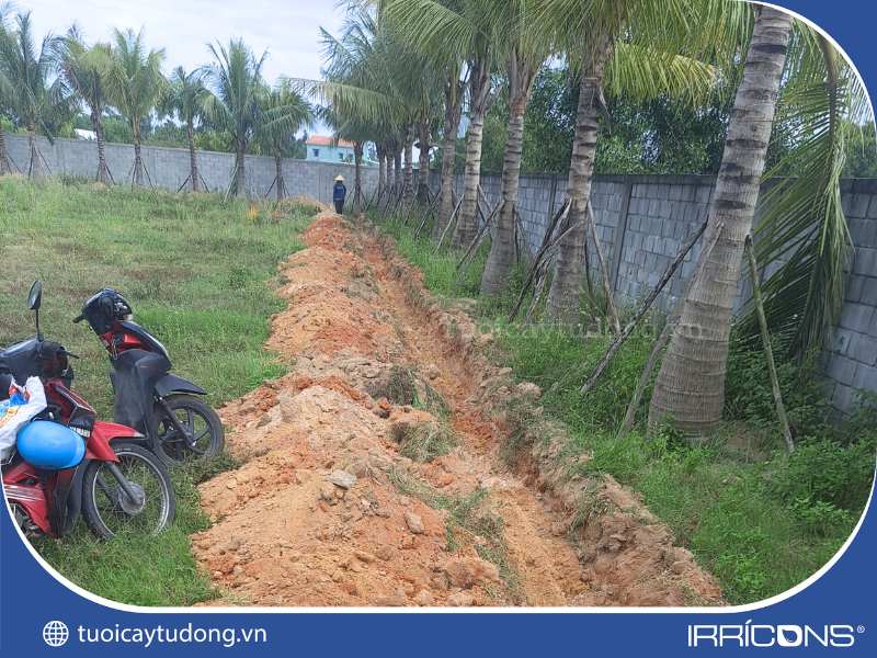 Chôn lấp hệ thống dây dẫn cho hệ thống tưới cây tự động