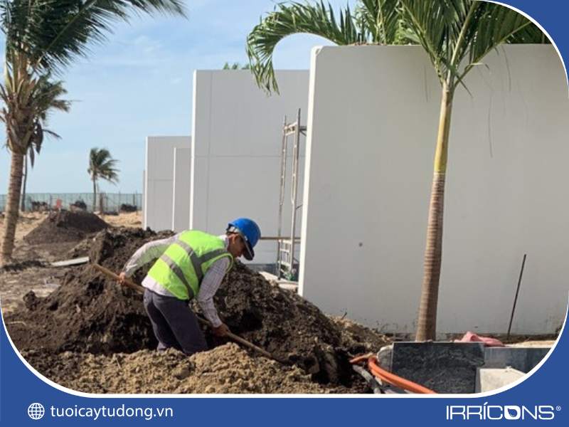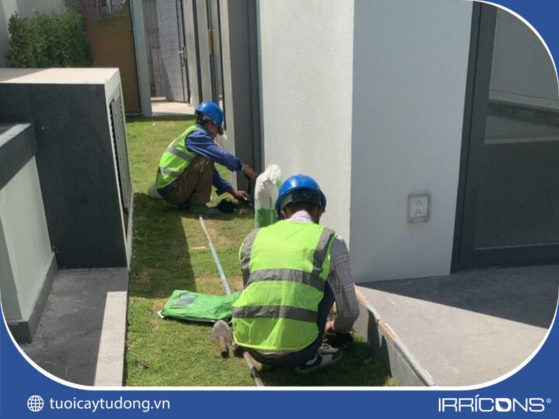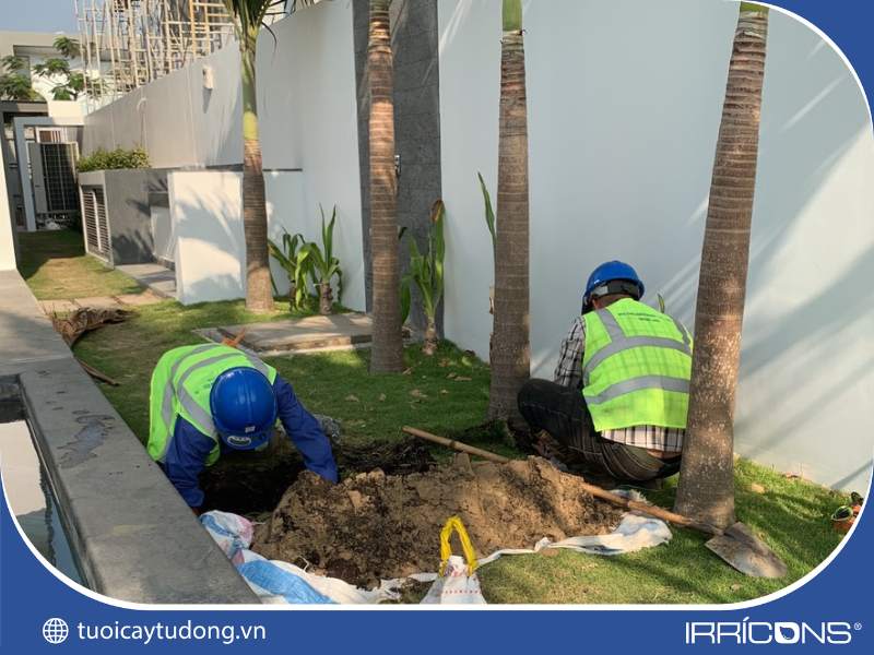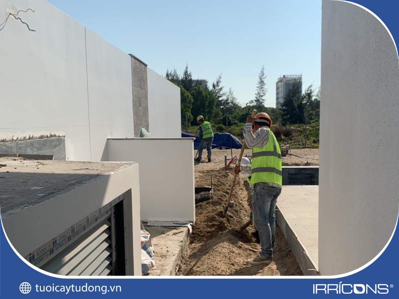 Không chỉ vậy, team Irricons còn duy trì sự liên lạc chặt chẽ với chủ đầu tư và các bên liên quan. Hai bên luôn nắm được tiến độ công việc mới nhất, đồng thời xử lý nhanh những trường hợp phát sinh giúp dự án thêm suôn sẻ, không bị gián đoạn. Có thể nói, sự phối hợp nhịp nhàng và hiệu quả giữa các bên đã góp phần quan trọng vào thành công của quá trình thi công hệ thống tưới tại 18 villa.