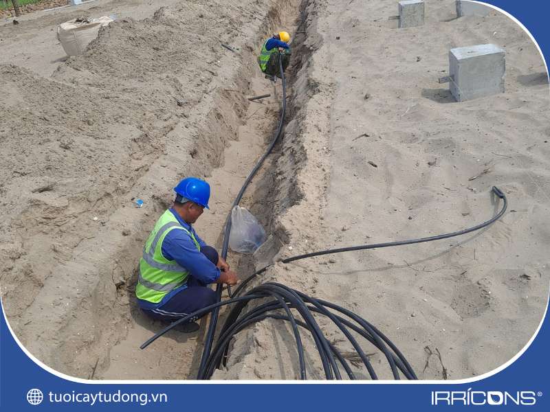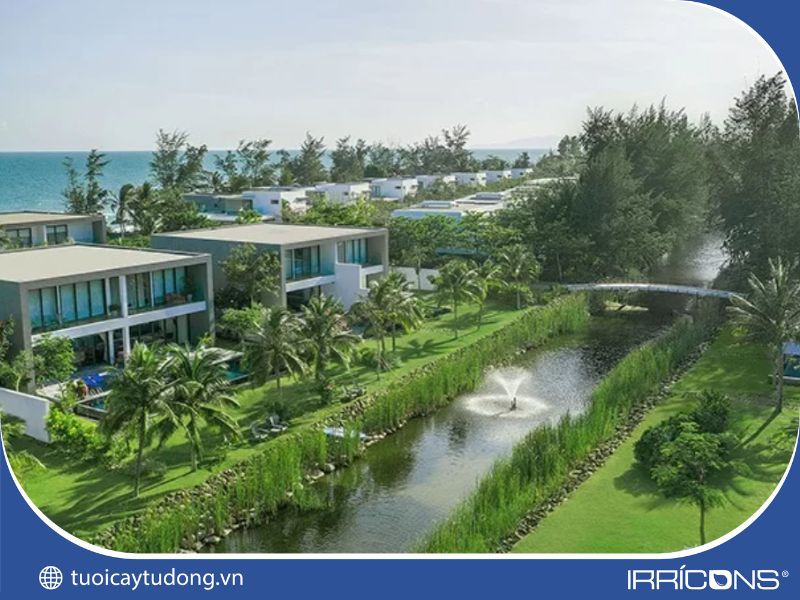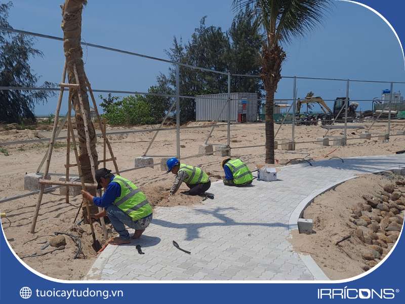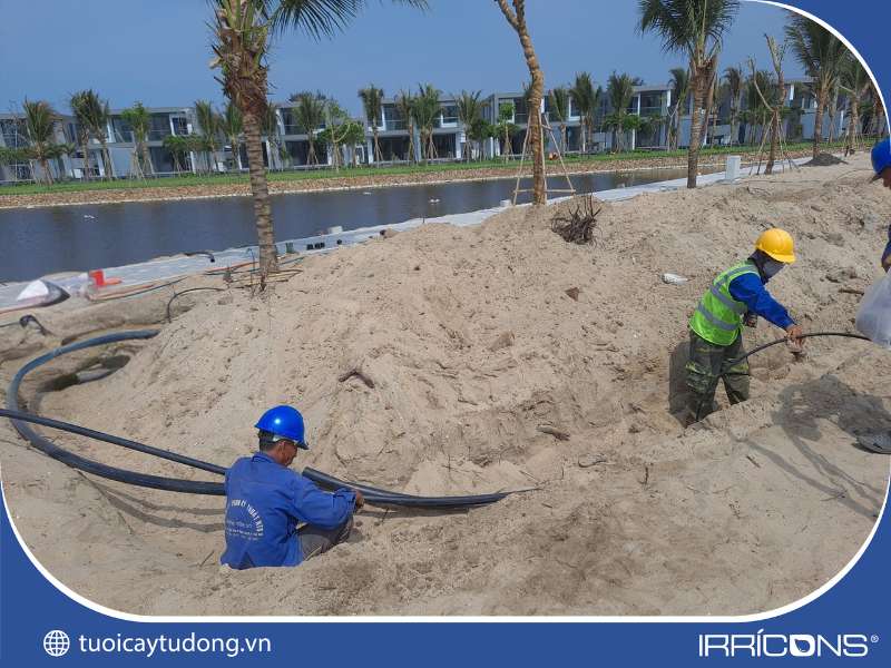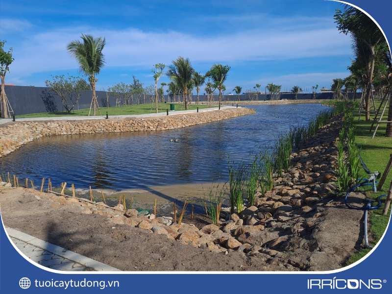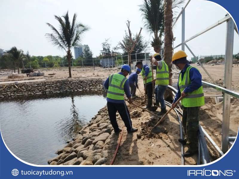 Thi công hệ thống tưới cây tự động cảnh quan ven hồ Sanctuary Hồ Tràm