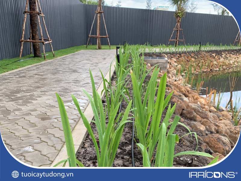 Dây tưới nhỏ giọt được lắp đặt cho cảnh quan