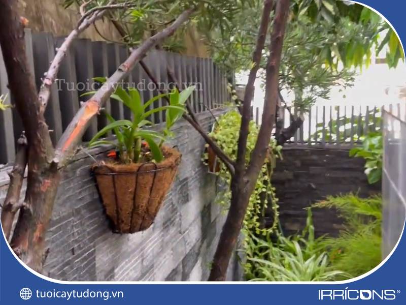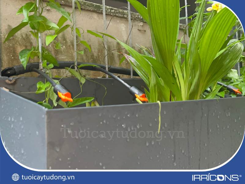 Thi công béc tưới nhỏ giọt cho chậu treo