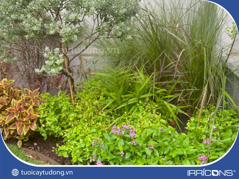 Béc tưới nhỏ giọt được lắp đặt cho bồn hoa