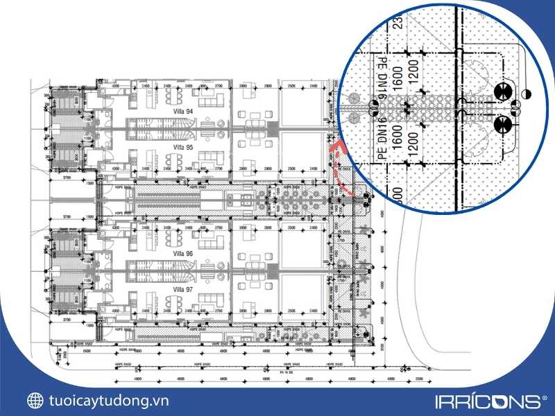 Một phần bản thiết kế hệ thống tưới cây tự động Santuary Hồ Tràm Vũng Tàu