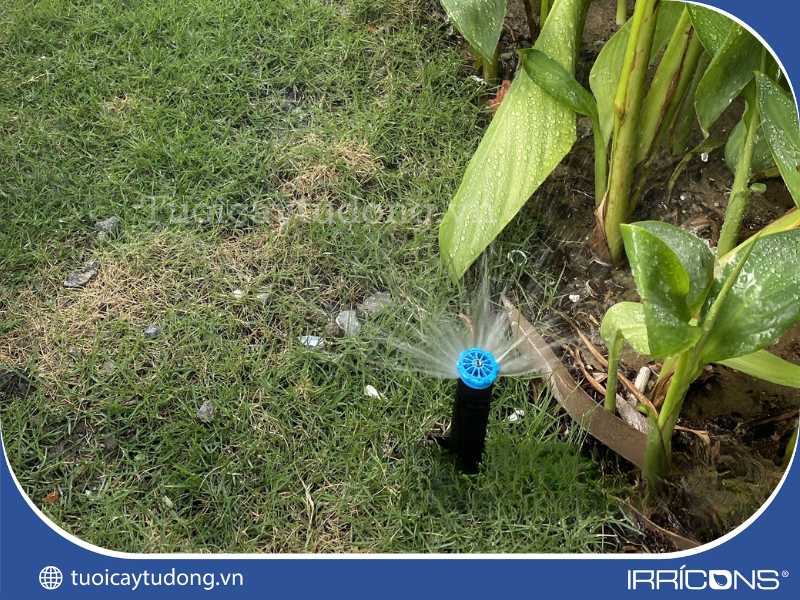 Béc phun mưa tưới cỏ rotor đang hoạt động