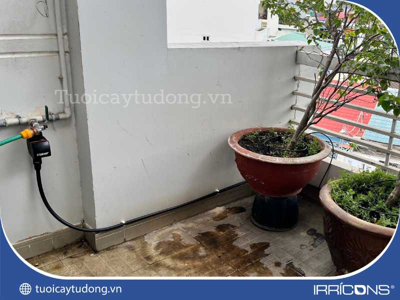 Thi công hệ thống tưới tự động nhỏ giọt cho sân thượng tại Thành Phố Thủ Đức, Thành Phố Hồ Chí Minh. Hệ thống sử dụng bộ hẹn giờ chạy bằng pin và các béc tưới nhỏ giọt của Teco, đảm bảo cung cấp nước đều đặn và hiệu quả cho cây cối. Thiết bị chống nước và chịu nhiệt tốt, thích hợp lắp đặt ngoài trời.