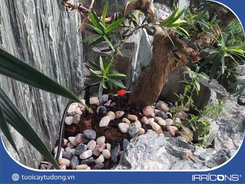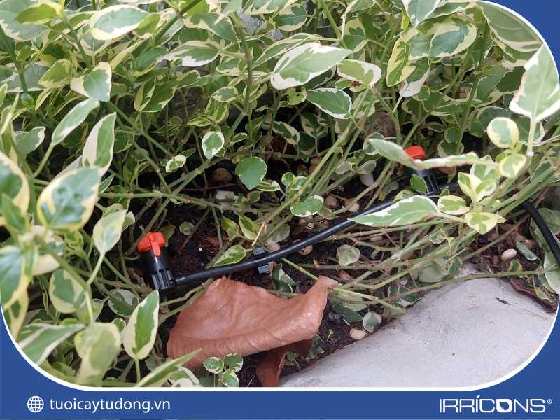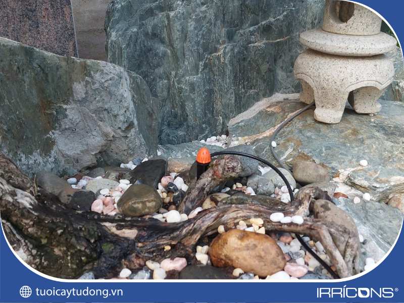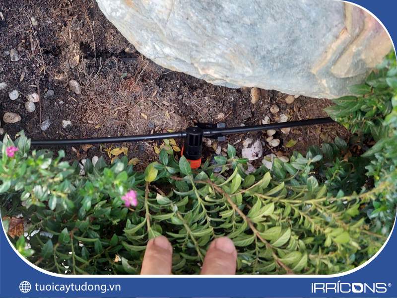Sau khi xem xét các đặc điểm sân vườn, Team Irricons đã quyết định lắp đặt hệ thống tưới cây tự động nhỏ giọt cho sân vườn nhà khách. Giải pháp này không chỉ giúp kiểm soát tốt lượng nước tưới mà còn đảm bảo quá trình tưới diễn ra gọn gàng, cũng không chảy tràn hay bắn tung tóe.