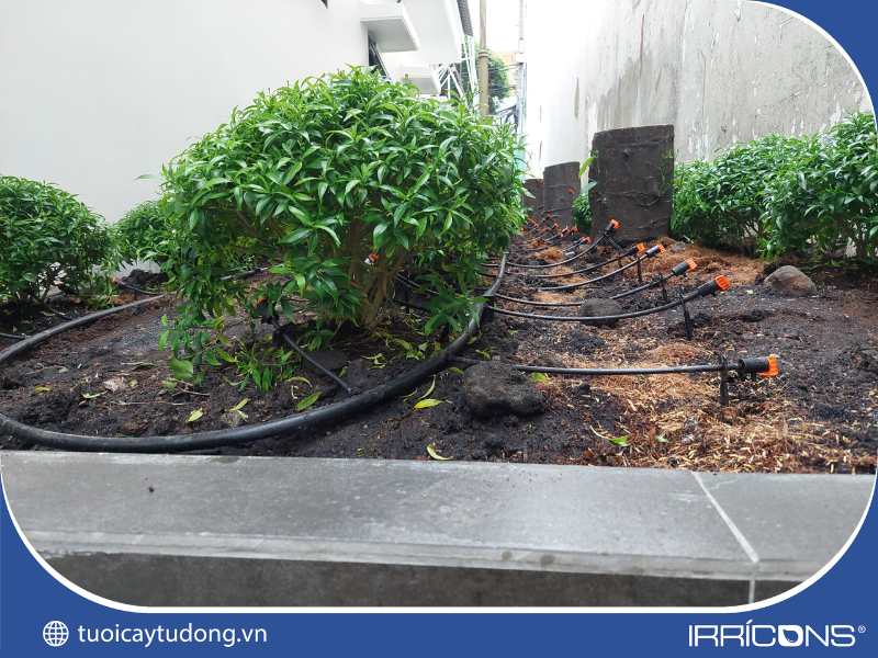 Các loại cây trong dự án lần này là khá đơn giản và có nhu cầu nước tưới thấp. Chính vì vậy, chúng tôi đã quyết định sử dụng béc tưới nhỏ giọt để cung cấp nước cho cảnh quan. Béc tưới nhỏ giọt mang lại nhiều ưu điểm vượt trội, không chỉ đảm bảo hiệu quả tưới tiêu mà còn giúp tiết kiệm nước một cách tối ưu.